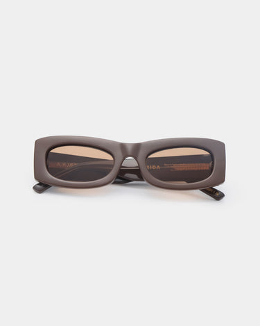 Die von den 70er Jahren inspirierte Sonnenbrille Frida hat einen Cateye-Effekt mit einem quadratischen, leicht nach oben gebogenen Rahmen. Die schmale, aber robuste Konstruktion der Frida sorgt für einen scharfen und klassischen Look, der zu jedem Stil passt.